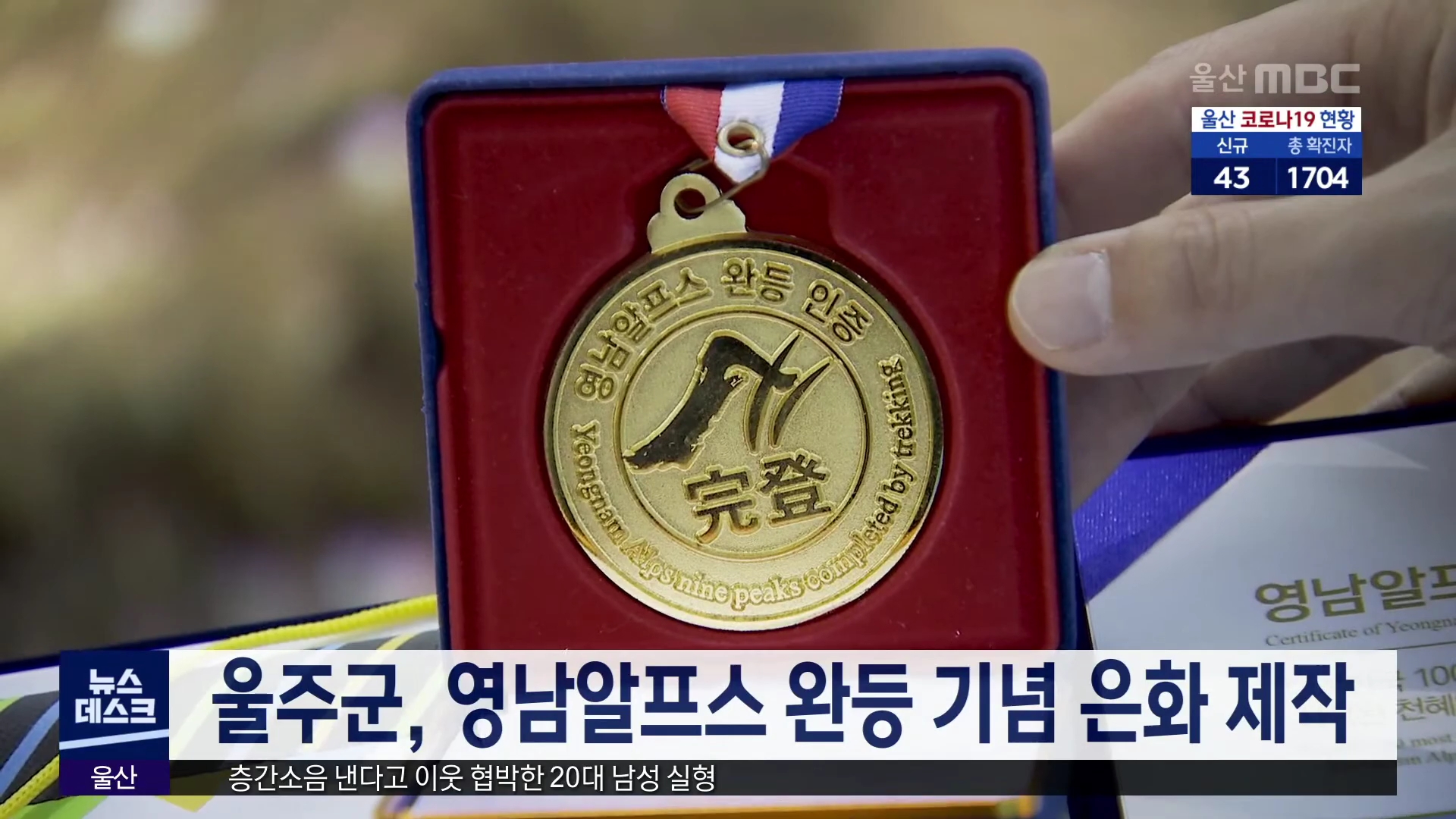 울주군이 올해 영남알프스 완등 인증자에게 증정할 기념 은화 디자인을 확정하고 제작에 들어갔습니다. 올해 기념은화는 가지산을 주제로 했으며 순은 소재에 무게 31.1g, 지름 38mm의 원형입니다. 울주군은 최종 결정된 디자인으로 이달 중 기념 은화 제작에 들어가며, 오는 7월부터 완등 인증자에게 증정할 계획입니다.//