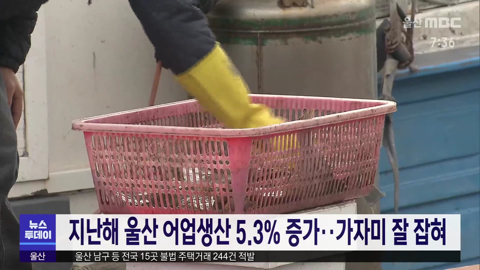지난해 가자미 어획량 증가에 힘입어 울산 어업 생산량이 전년 대비 5.3% 증가했습니다. 동남지방통계청이 밝힌 2020년 울산시 어업생산동향에 따르면 울산 어업 생산량은 만8천500여톤으로 전년도에 비해 5.3% 증가했습니다. 어업별로는 가자미류와 살오징어가 많이 잡히면서 일반해면 어업이 10.2% 증가한 반면 긴 장마로...