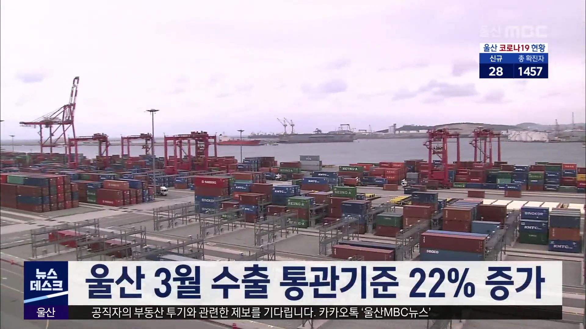 지난달 울산 수출액이 주요 품목인 화학제품과 자동차, 선박의 수출 증가에 따라 지난 2018년 10월 이후 최대 실적을 기록했습니다. 울산세관이 밝힌 '3월 울산 수출입 동향'에 따르면 수출액은 66억4천만달러로 지난해 같은 달이 비해 22% 증가했습니다. 품목별로 보면 화학제품과 선박이 50% 안팎으로 수출이 크게 늘었고...