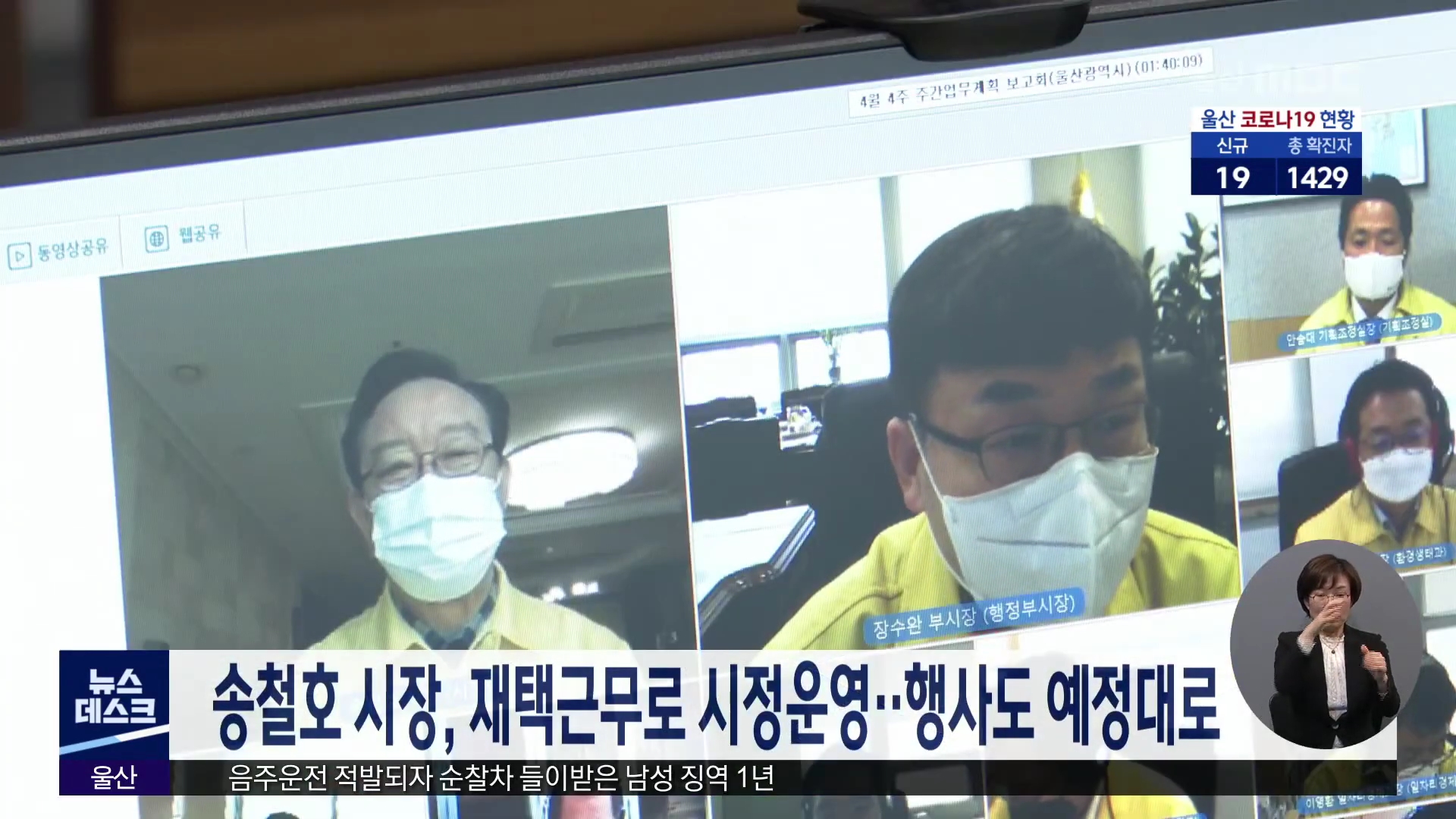 코로나19에 확진된 직원과 접촉해 예방차원에서 지난 13일부터 2주간 자가격리 중인 송철호 울산시장이 재택근무로 시정을 운영하고 있습니다. 송 시장은 오늘 주간업무계획 보고회의를 영상으로 주재하고 코로나19 방역상황 점검과 보행자 우선 교통체계 구축 등 현안 업무를 처리했습니다. 울산시는 송 시장이 자리에 없...