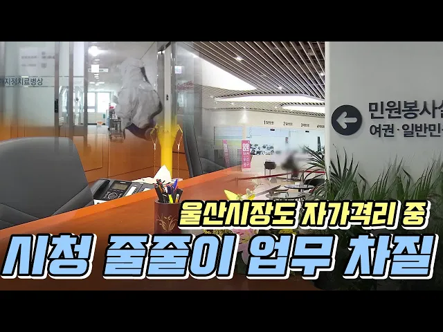 ◀ANC▶코로나에 감염된 시청 직원과 밀접 접촉한 송철호 울산시장이 자가격리에 들어가면서 시정이 줄줄이 차질을 빚고 있습니다. 특히 시장의 업무 수행이 원활하지 않는 가운데 코로나19 음압 병상이 바닥을 드러내고 있어 방역 대응에 위기를 맞고 있습니다. 유영재 기자 ◀END▶ ◀VCR▶울산시청 민원실. 시청 직...