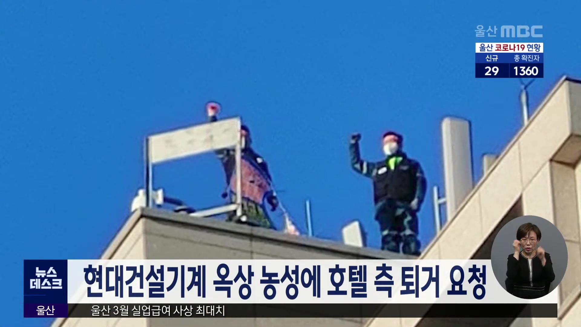 현대건설기계 옥상 농성에 호텔 측 퇴거 요청