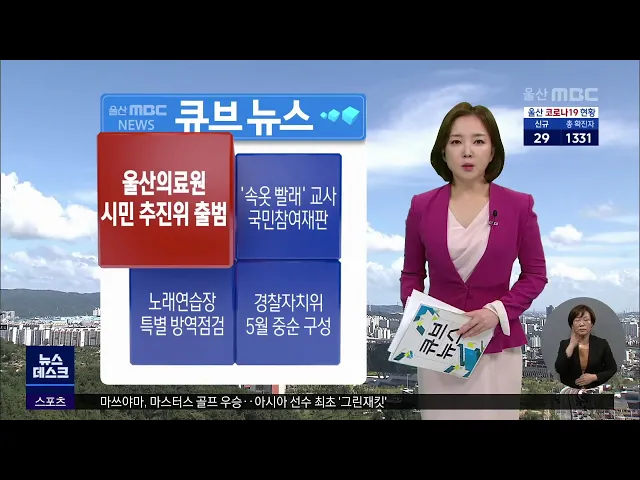 울산시가 경찰과 합동으로 지역 노래연습장에 대한 특별 방역점검을 벌입니다.이번 점검은 최근 경기도 성남과 전북 전주 등에서 노래연습장을 매개로 한 연쇄 감염 사례가 발생하고 울산에서도 확진자가 급증한 데 따른 것입니다.내일(4/13)부터 울산지역 노래방은 밤 10시에서 다음날 새벽 5시까지 운영을 할 수 없고, 손...