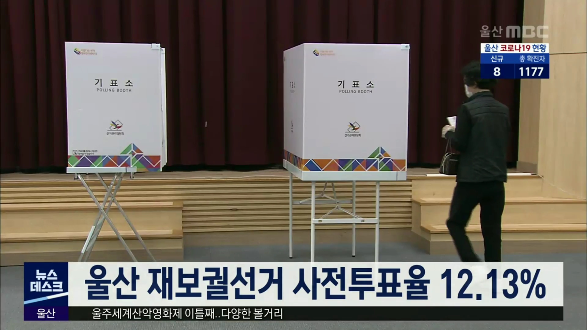 어제(4/2)와 오늘(4/3) 이틀간 진행된 4.7 재보궐선거 사전투표 결과 울산지역의 투표율은 12.13%로 집계됐습니다. 이는 전국 평균인 20.54%에 비해 크게 낮은 수치입니다. 선거별로는 남구청장 재선거의 투표율이 12.76%를 기록했고, 울주군의원 보궐선거 투표율은 9.8%에 그친 것으로 나타났습니다.
