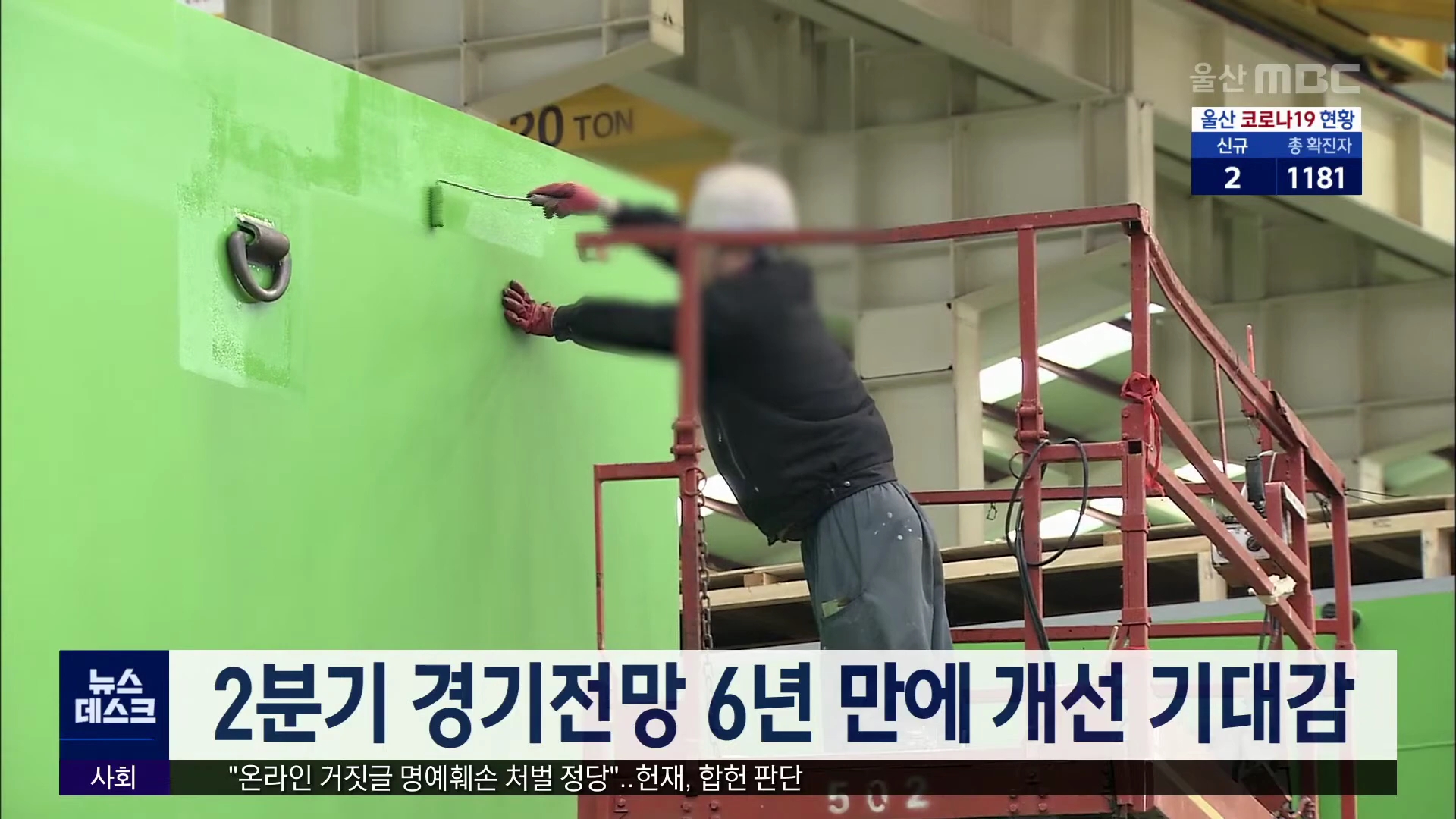 올해 2분기 기업경기가 6년 만에 나아질 것으로 전망됐습니다. 울산상공회의소가 제조업체 150곳을 대상으로 올해 2분기 기업경기 전망지수를 조사한 결과 1분기보다 31p나 뛰어오른 102로 나타났습니다. 기업경기 전망지수가 100을 넘은 것은 지난 2015년 2분기 이후 처음입니다. 기업경기 전망지수가 100 이상이면 경기가...