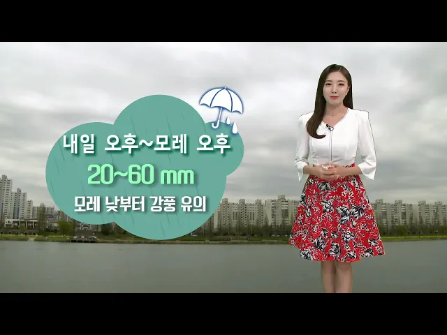 [종일 흐려요.. 주말에 20~60mm 비]1) 오늘은 종일 흐린 하늘이 예상됩니다. 고기압의 가장자리에 들면서 전국이 대체로 흐리겠고요. 낮기온 17도로 어제보다 조금 낮겠지만 대체로 포근합니다. 오늘 오전까지 울산 해안가에서는 바람이 다소 강하게 부는 곳이 있어서 해안가 안전사고에 유의하시기 바랍니다. 2) 주말인 내...