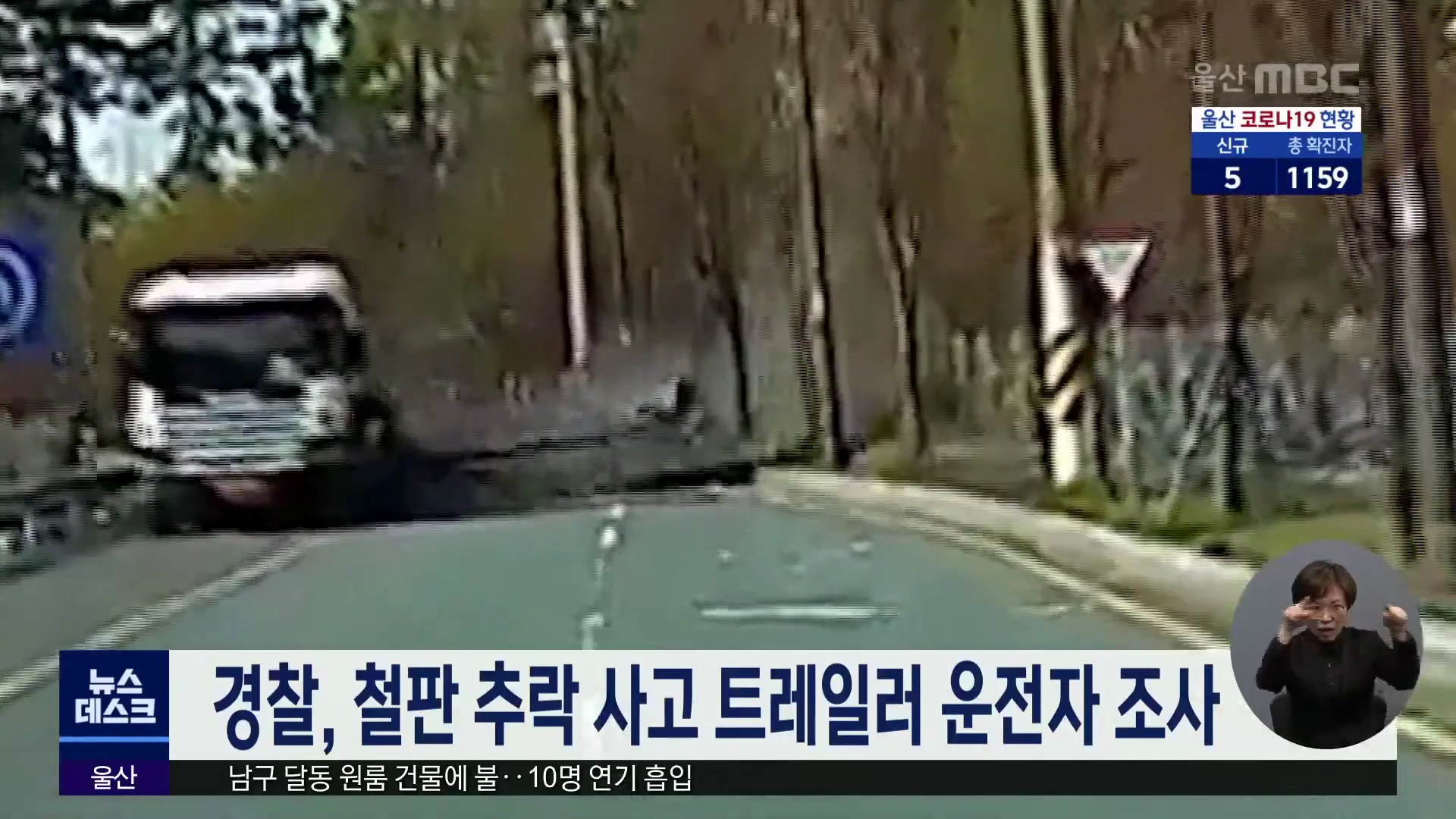 울산mbc가 보도한 트레일러에서 철판이 쏟아져 출근길 차량을 덮친 사고에 대해 경찰이 조사를 진행 중입니다. 해당 트레일러에는 당시 한 장 당 3톤을 육박하는 철판 7장이 실려있었으며 과적은 아니지만 허술한 화물 적재로 사고가 발생한 것으로 확인됐습니다. 경찰은 60대 운전자 A 씨를 교통사고처리 특례법상 적재물 ...