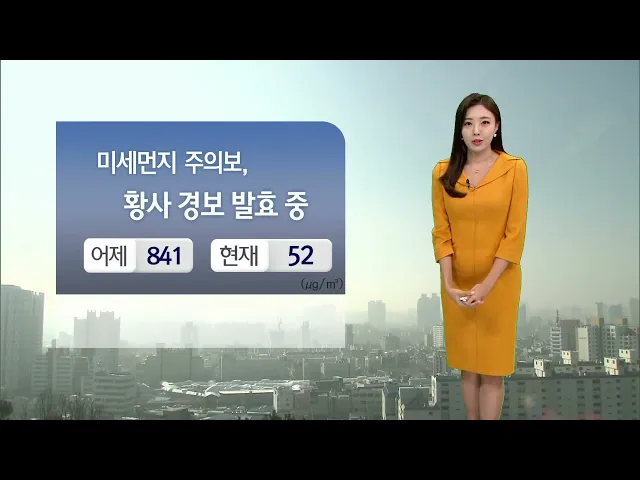 [오늘도 공기질 매우 나쁨... 호흡기 유의]1) 그야말로 최악의 대기 상태였습니다. 울산은 어제 미세먼지 농도 841마이크로그램까지 오르는 등 평소보다 수십 배가 넘는 높은 수치를 보였습니다. 어제 오전 8시를 기해 황사 경보가 내려졌고, 미세먼지 경보와 초미세먼지 주의보도 함께 발효됐는데요. 현재는 미세먼지 경보...