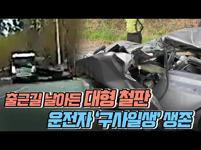 출근길 날아든 대형 철판.. 운전자 '구사일생' 생존