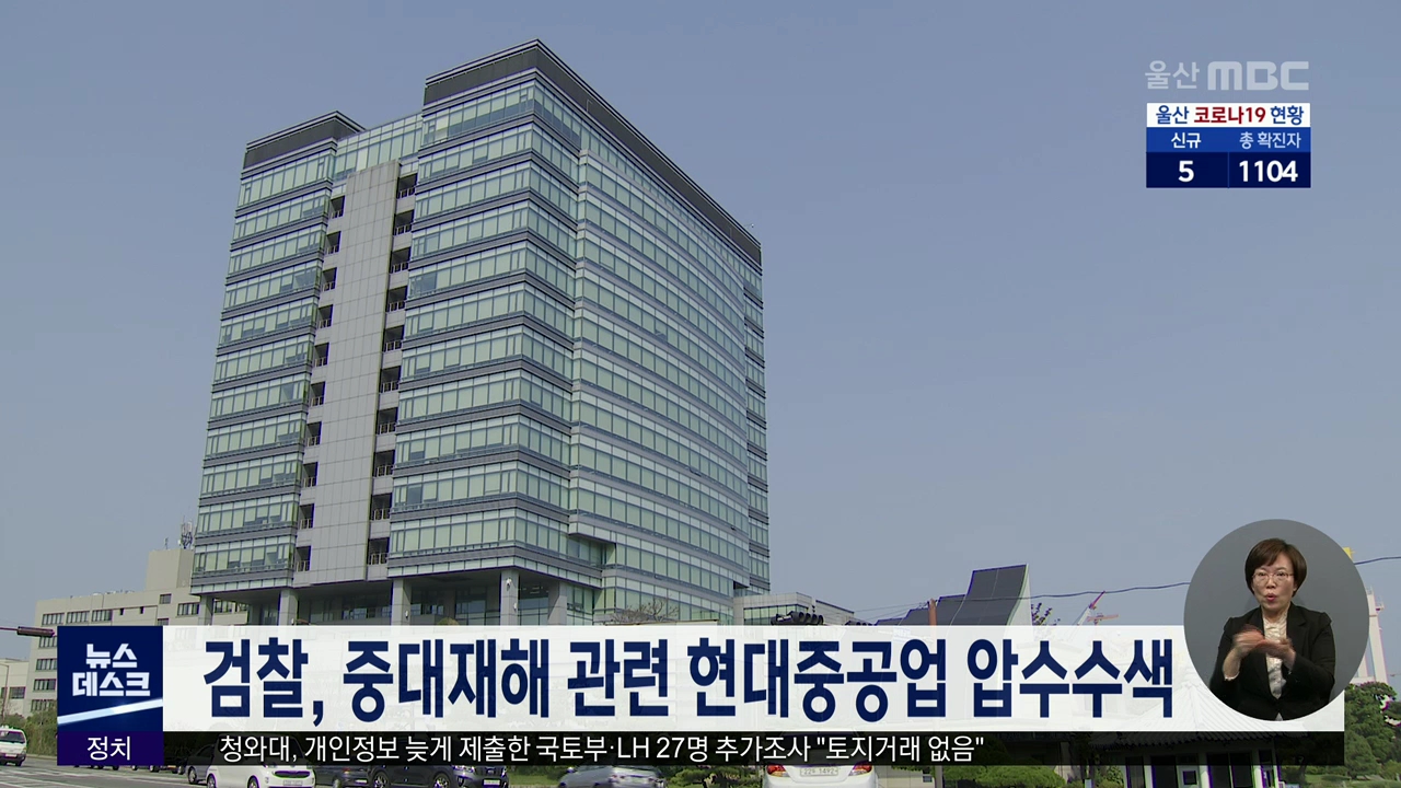 현대중공업 중대재해사건 수사와 관련해 검찰과 고용노동부가 오늘(3/17) 현대중공업 울산 본사를 압수수색했습니다. 이번 압수수색은 지난달 5일 현대중공업 근로자 41살 강 모씨가 흘러내린 철판에 끼어 사망한 사건 등 중대 재해 수사와 관련한 것으로 알려졌습니다. 앞서 지난달 17일 민주노총 울산본부는 이 사고와 관...
