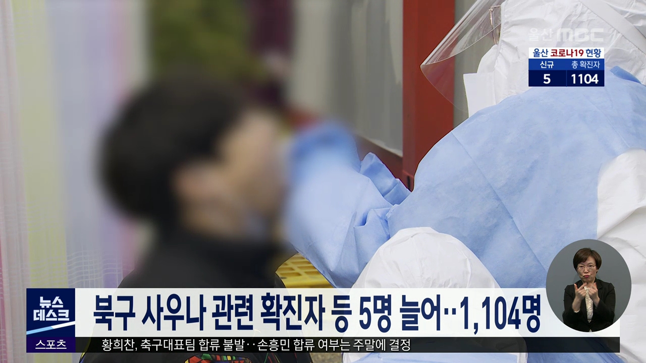 북구 사우나 관련 확진자 등 5명 늘어..1,104명