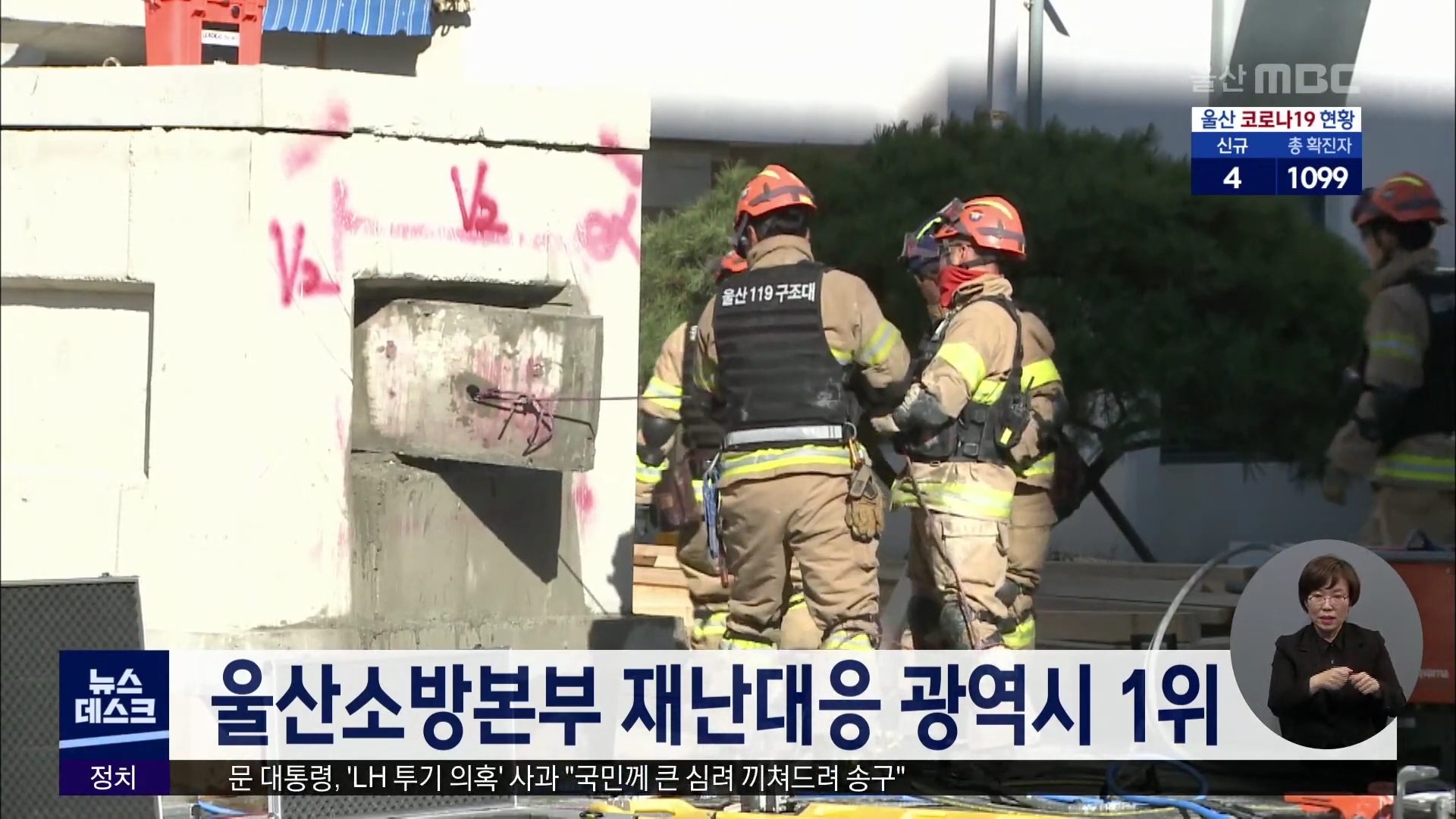 울산소방본부가 지난해 전국 19개 시·도 소방본부 긴급구조 훈련 평가에서 광역시 1위, 전국 시도 2위를 차지했습니다. 울산소방은 지난해 11월 온산국가산단에서 실시한 국가 단위 긴급구조 훈련에서 세계적인 감염병 상황 발생에 따른 이원 생중계 등 새로운 방식의 훈련 시스템을 선보여 높은 점수를 받았다고 밝혔습니...