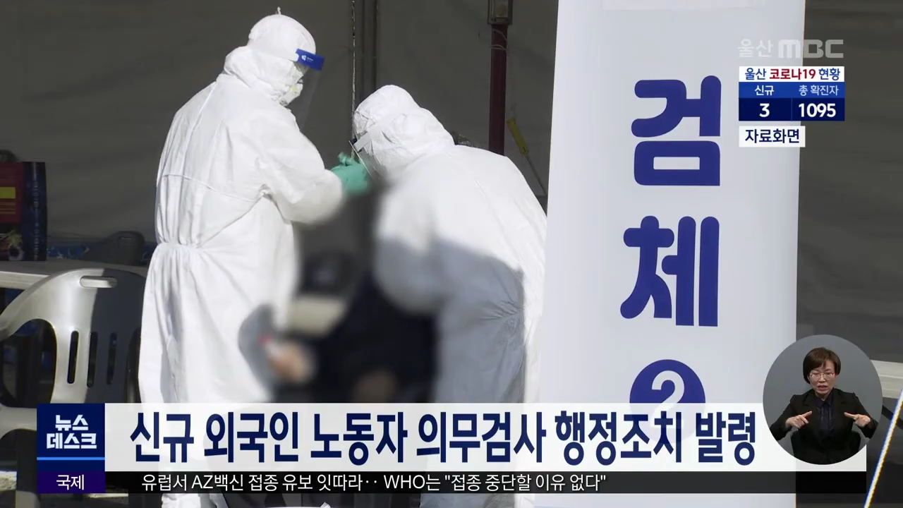 울산시가 행정조치 제47호를 발령하고 내일(3/16)부터 관내 모든 외국인 고용사업주에게 신규 외국인 노동자에 대해 고용 전 코로나19 선제검사를 의무화했습니다. 특히 미등록 외국인 노동자를 포함한 외국인 노동자들의 개인정보는 철저히 보장하겠다고 밝혔습니다. 한편 울산시는 지난 3일과 5일 온산공단과 정자항에서 ...