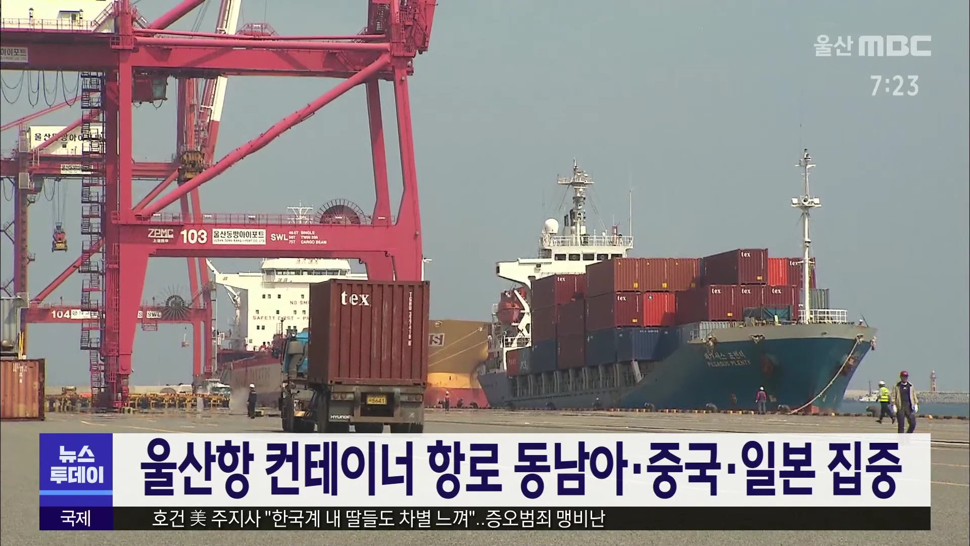 울산항 컨테이너 항로가 특정 지역에 집중돼 있어 항로를 다변화해야 한다는 지적이 나오고 있습니다. 울산항만공사에 따르면 지난해 기준 울산항 컨테이너 항로는 모두 36개로 동남아가 14개로 가장 많고 중국 12개, 일본 8개,러시아, 인도 항로가 각각 1개씩입니다. 이는 사실상 항로가 동남아와 중국, 일본에 국한된 것...