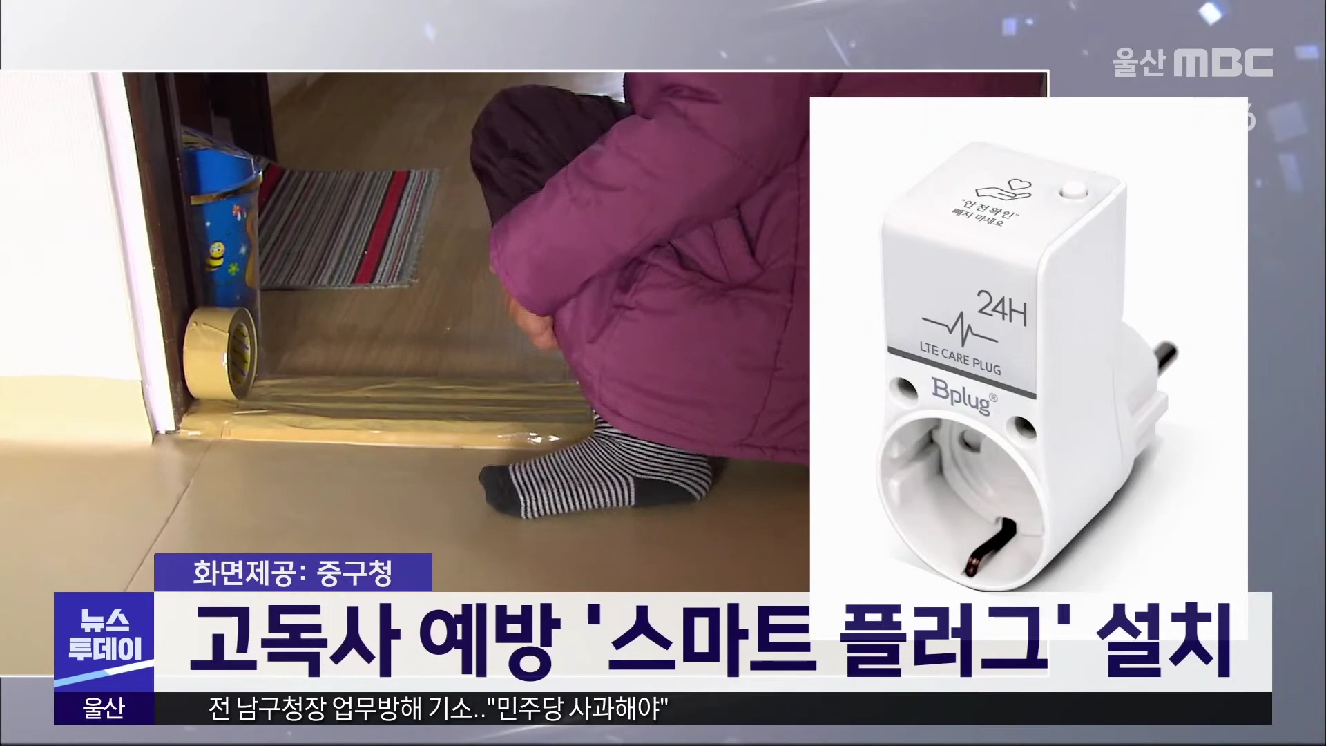 중구는 울산지역 최초로 독거 어르신 100가구를 대상으로 고독사를 막기 위한 비대면 디지털 돌봄 사업을 추진합니다. 이 사업은 TV 등 가전제품 전원 플러그에 '스마트 플러그'를 연결한 후 집안 조도와 전기 사용량의 변화를 살피는 것으로, 일정 시간 변화가 없을 경우 생활 지원사에게 자동으로 문자가 전송됩니다./