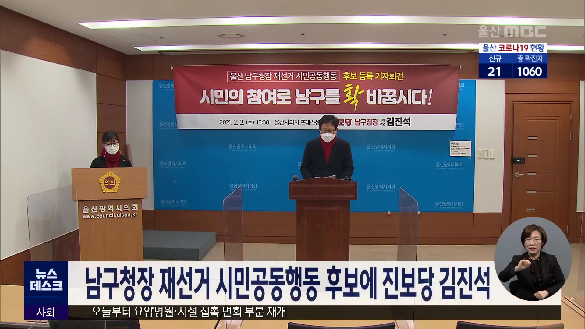 남구청장 재선거 시민공동행동은 "진보당 김진석 남구청장 예비후보를 시민공동행동 후보로 확정했다"고 밝혔습니다. 이에대해 김진석 후보는 "시민이 주체가 되고, 시민이 정치의 주인이되는 행정을 펼칠 수 있도록 노력하겠다"고 강조했습니다. 4월 7일에 열리는 남구청장 재선거에는 더불어 민주당 김석겸 예비후보와 국...