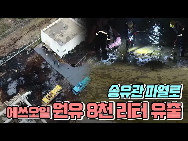 ◀ANC▶어젯(3/4)밤 에쓰오일에서 발생한원유 누출은 지하에 매설된 송유관로가파열되며 발생한 것으로 밝혀졌습니다.유출된 원유량만 8천리터 가량인데 지난해에도에쓰오일에서 비슷한 사고로 원유가 유출돼관리 소홀을 지적하는 목소리가 커지고 있습니다.정인곤 기자. ◀END▶ ◀VCR▶거대한 송유관로 옆으로새어나...