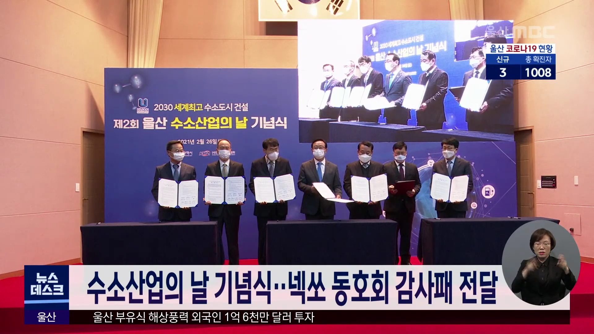 '제2회 울산 수소산업의 날' 기념행사가 오늘(2/26) 울산테크노파크 본부동 강당에서 열렸습니다. 현대건설기계와 현대자동차, 건설기계부품연구원 등 6개 기업과 기관은 수소 건설·산업기계 실증과 보급 활성화를 위한 업무협약을 체결했습니다. 또한 수소전기차 넥쏘 카페 동호회가 기념식에 참석해 울산시가 수소전기차 ...