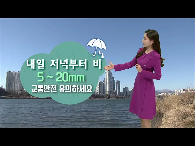 [추위 오늘 아침까지.. 내일 비 5~20mm]1) 어제 갑자기 찾아온 추위는 오늘 아침까지 이어지겠습니다. 현재 울산의 기온 2.9도, 한낮 최고기온은 11도로 어제와 비슷한 기온인데요. 이른 아침 나오신다면 따뜻한 옷차림이 필요하겠습니다.2) 한편 내일은 비 소식이 있습니다. 내일 저녁부터 비가 내리기 시작해 모레인 금요...