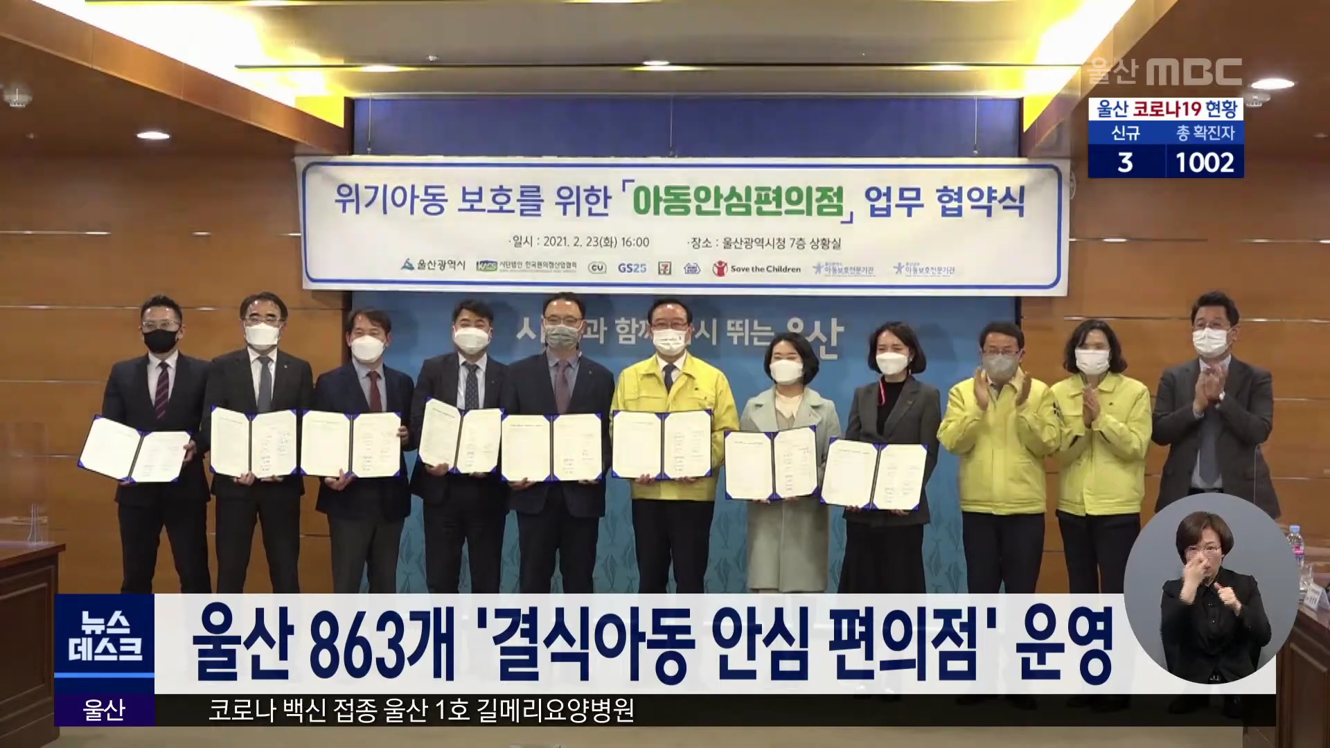 울산시와 한국편의점산업협회 등 9개 기관은 위기 아동을 긴급 보호하는 '아동안심편의점' 운영 협약을 맺었습니다. 이에 따라 지역 863개 편의점 종사자는 결식이나 아동학대로 고통받는 위기 아동이 방문하면 112에 신고하고 경찰 도착 때까지 아동을 보호하기로 했습니다. 또, 결식 아동을 위해서는 도시락과 과자 등을 ...