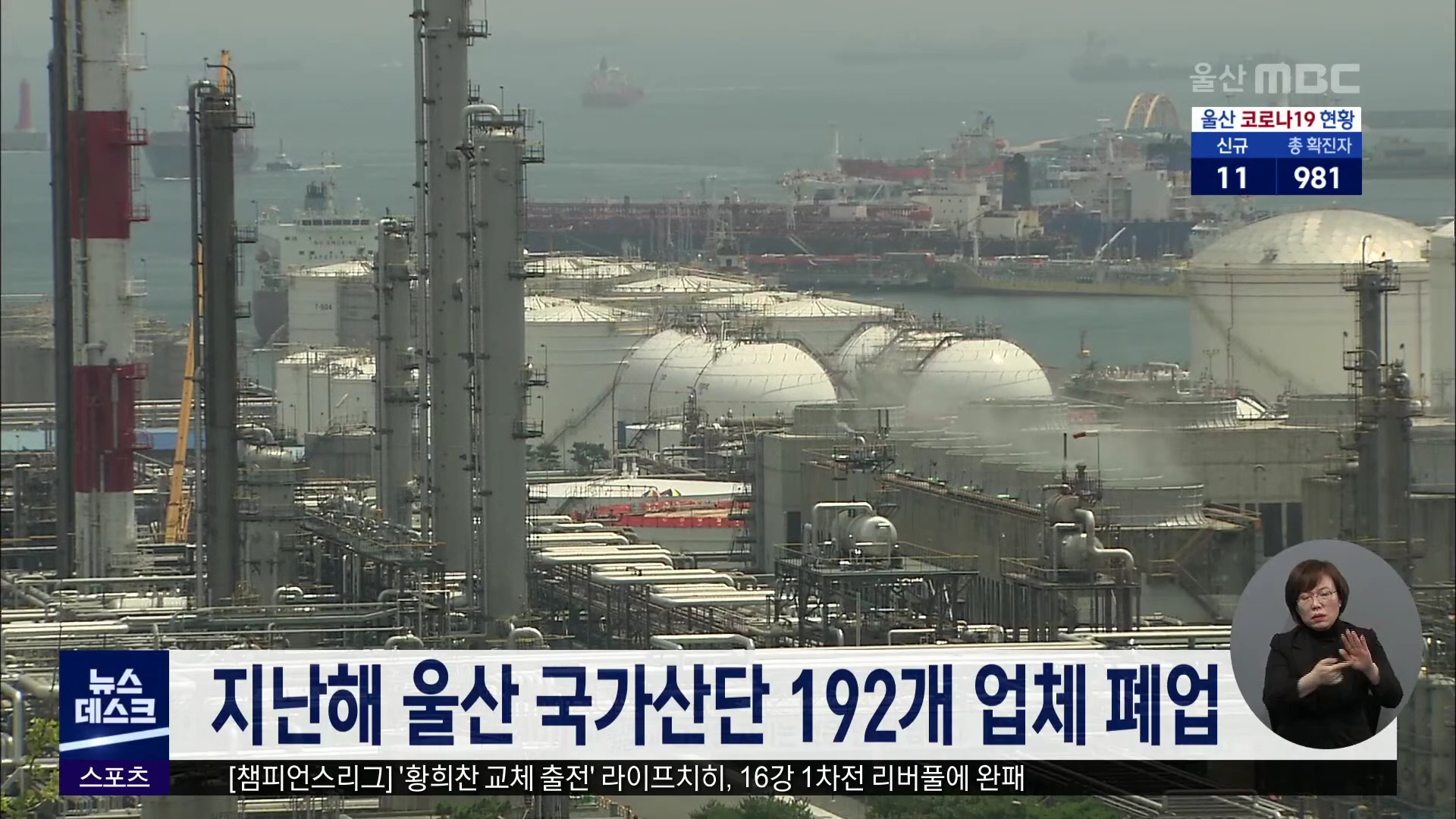 코로나19에 따른 경기 침체로 지난해 울산국가산단에 있는 기업체가 상당수 문을 닫은 것으로 나타났습니다. 한국산업단지공단에 따르면 지난해 12월 기준 울산 국가산업단지의 가동업체수는 748개로 1년 새 192개가 줄었습니다. 또 지난해 생산액은 138조로 한해 전보다 19조 원 감소했고, 수출액은 533억 달러로 52억 달...