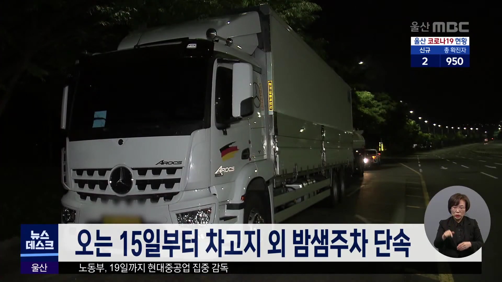 울산시는 차고지가 아닌 곳에 밤샘 주차를 하는 화물차와 건설기계를 집중 단속합니다. 시는 오는 15일부터 26일까지 매곡 현대아파트와 남목 마성터널, 테크노산업단지, 선바위 일대 등을 대상으로 집중 단속을 벌입니다. 단속은 자정부터 실시하며 1시간 이상 차고지가 아닌 곳에 주차한 차량에 대해서는 최대 5일간 운행...