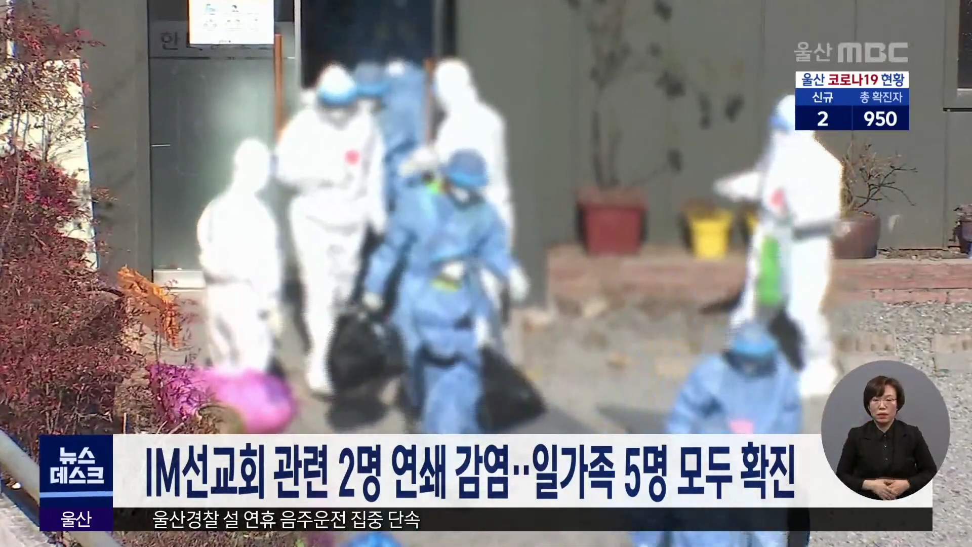 지난달 IM선교회 관련 시설을 방문했다가 코로나에 걸린 일가족 3명의 또 다른 가족 2명이 추가로 코로나 확진 판정을 받았습니다. 울산시는 오늘(2/10) 확진된 남구에 사는 40대와 10대, 2명은 지난달 확진된 920번의 가족이라고 발혔습니다. 확진된 일가족 5명은 지난달 17일부터 21일까지 광주시 광산구에 있는 비인가 ...