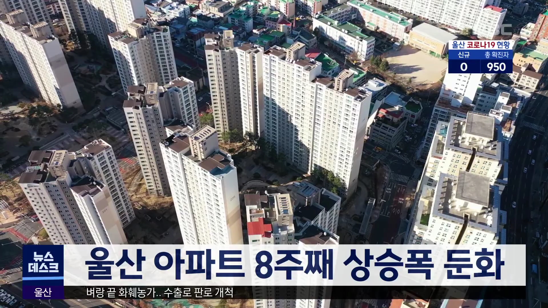 울산지역 아파트 매매가격이 지난해 12월 조정대상지역에 포함된 이래 8주째 상승폭이 줄고 있습니다. 한국부동산원이 밝힌 2월 둘째주 전국 주간 아파트 가격 동향을 보면 울산은 전주 대비 0.2% 올랐지만 상승폭은 더 낮아지고 있습니다. 전국적으로 보면 경기와 인천은 상승폭을 유지했고 서울, 세종, 울산을 포함한 5대...