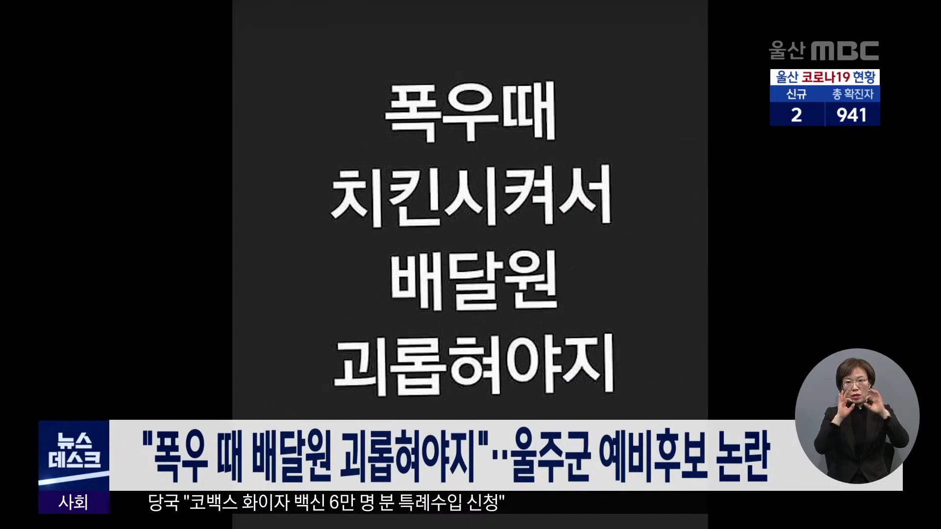 울주군의회 보궐선거 예비후보로 등록한 청년 후보자 박모 씨가 지난해 7월 자신의 SNS 계정에 "폭우 때 치킨 시켜서 배달원 괴롭혀야지" 라는 글을 올린 사실이 알려져 자질 논란이 일고 있습니다. 이에대해 박씨는 친구들과 함께 쓰는 계정이라 내용을 확인해봐야 한다고 밝혔습니다. 국민의힘 울산시당 혁신위원장을 맡...