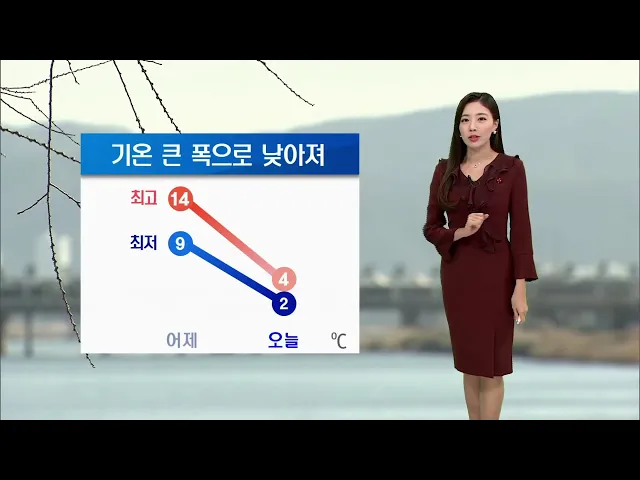 [기온 크게 떨어져.. 미세먼지 보통]1) 오늘은 어제보다 더 따뜻하게 입으셔야겠습니다. 북서쪽에서 찬 공기가 유입되면서 오늘 아침 기온 어제보다 7도가량이나 낮은데요. 바람도 약간 강하게 불어 체감온도는 0도까지 떨어져 춥습니다. 또 한낮에도 4도에 그칠 것으로 보이는 만큼 오늘은 특히 보온에 신경 써주시기 바랍...