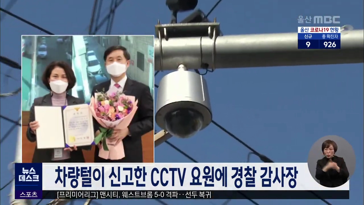 차량털이 신고한 CCTV 요원에 경찰 감사장
