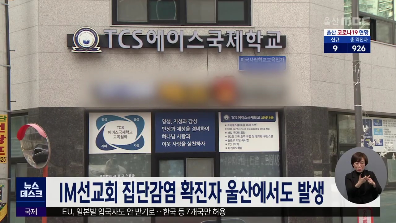 전국에서 집단 감염이 이어지고 있는 기독교단체 IM선교회 관련 시설발 확진자가 울산에서도 발생했습니다. 오늘(1/27) 확진된 918번 환자인 40대 여성은 자녀인 919, 920번 환자와 함께 지난 17일부터 21일까지 IM선교회가 운영하는 광주 TCS국제학교를 방문했다가 코로나19 감염이 확인됐습니다. 이들은 광주에서 울산으...