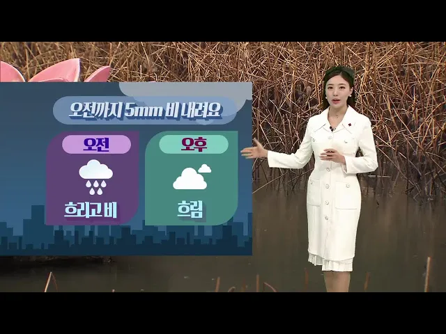 [오늘 오전까지 비.. 내일 아침 다시 비 내려]1) 현재 울산은 빗방울만 조금씩 떨어지는 정도인데요. 앞으로 5mm 미만의 비가 조금 더 내리다 그치겠습니다. 오후부터 하늘은 흐리겠고, 오늘 밤부터 내일 새벽 사이에 동풍의 영향을 받아 빗방울이 떨어지는 곳이 있겠습니다.2) 주말인 내일도 비가 내리겠는데요. 내일 아침...