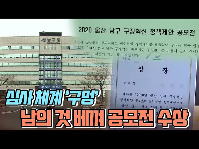 ◀ANC▶지방자치단체들이 시민들의 좋은 아이디어를채택하기 위해 각종 공모전을 합니다.그런데 상금을 노리고 남의 걸 베껴 전국의 각종 공모전을 휩쓸고 있는 한 사기꾼이남구에서도 상을 받은 것으로 드러났습니다.남구는 시민들이 제보하기 전까지표절인 것도 모르고 있었습니다.김문희 기자. ◀END▶ ◀VCR▶지난 ...