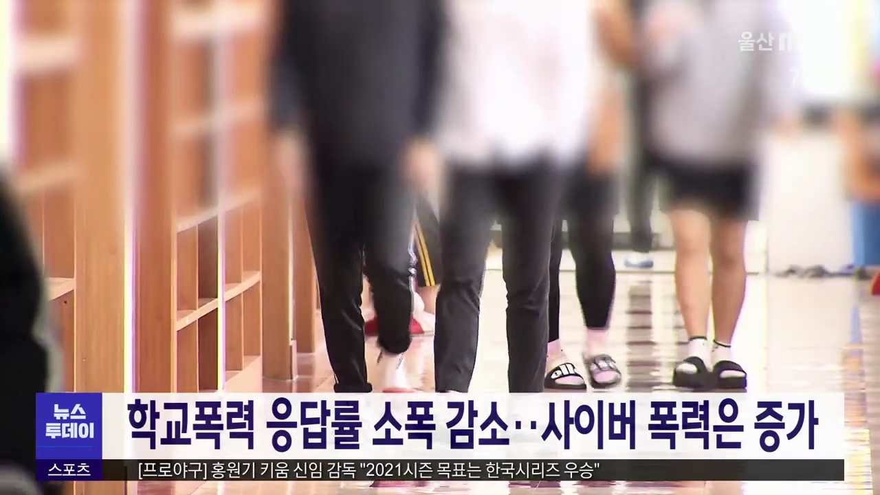 지난해 학교 폭력 실태 조사 결과 100명 중 1명이 피해 경험이 있는 것으로 응답했습니다. 울산시교육청은 지난해 9월부터 울산에서 재학 중인 초등학교 4학년부터 고등학교 2학년 전체 8만 6천여 명을 대상으로 온라인 학교 폭력 실태 조사를 벌인 결과 피해 응답률이 0.9%로 나타났다고 밝혔습니다. 피해 유형은 언어폭력...