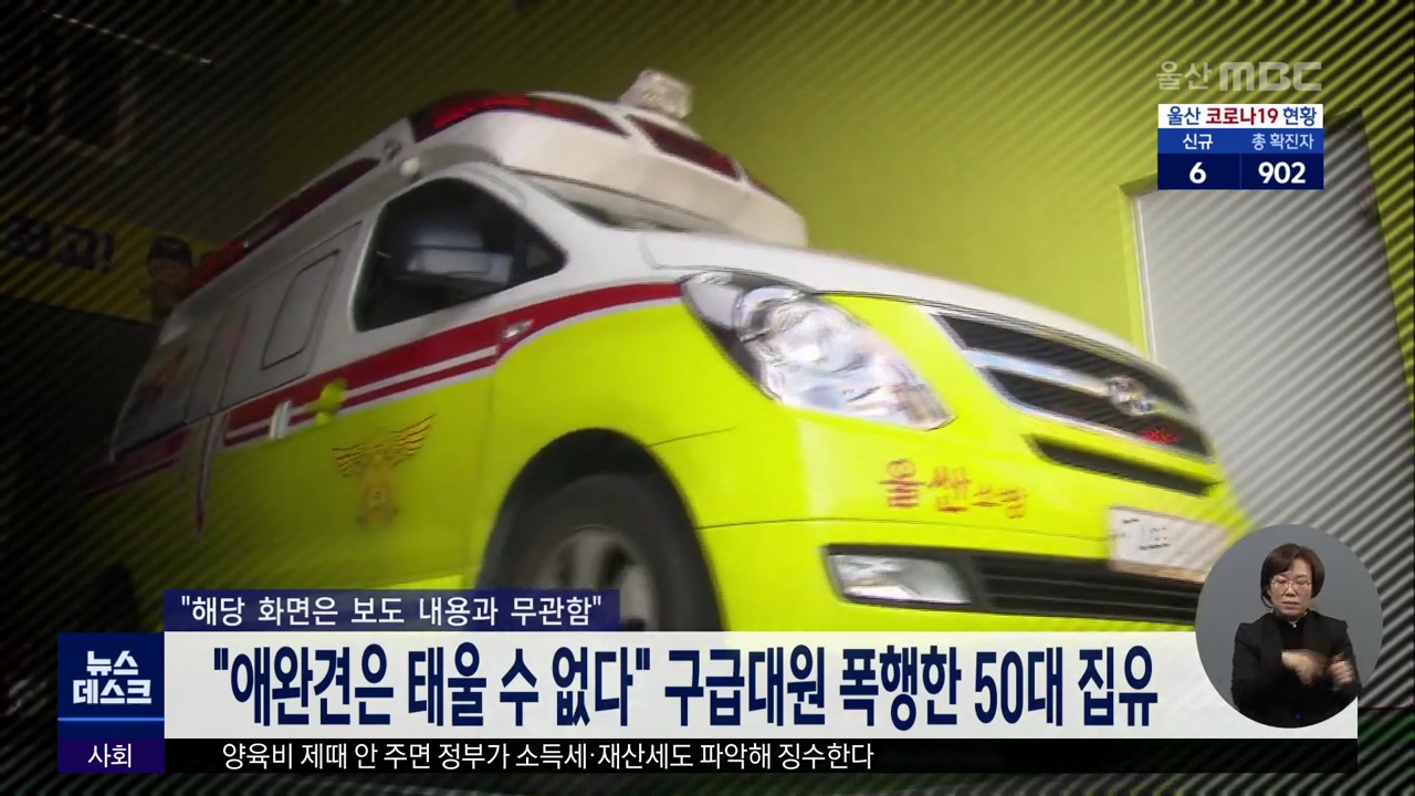 울산지법 형사8단독 정현수 판사는 소방기본법 위반과 공무집행 방해 혐의로 기소된 51살 A씨에게 징역 10개월에 집행유예 2년을 선고했습니다. A씨는 지난해 4월 자신의 아내를 병원으로 이송하는 과정에서 소방대원이 애완견을 데리고 구급차에 탈 수 없다며 제지하자 욕설을 하고 얼굴 등을 여러차례 폭행한 혐의로 기소...