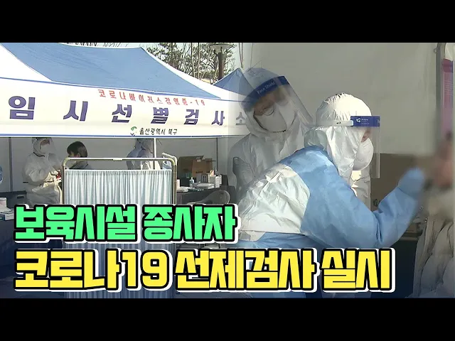 ◀ANC▶지난주 동구의 한 어린이집에서 코로나 연쇄감염이 발생하면서 방역당국이바짝 긴장했는데요.울산의 자치단체가 학부모들의 불안감을해소하기 위해 모든 보육시설 종사자를대상으로 무료 코로나 검사를실시하기로 했습니다.정인곤 기자. ◀END▶ ◀VCR▶공원 한켠에 텐트가 들어서고 임시 선별진료소가 꾸려졌습...