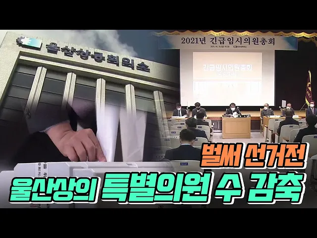 ◀ANC▶울산상공회의소가오늘(1/15) 긴급총회를 열고특별의원 수를 40% 줄이기로 했습니다.특별의원 수에 따라다음 달로 예정된상공회의소 의장 선거 판세가 달라질 수 있어각 후보 진영은 촉각을 곤두세웠습니다.홍상순 기잡니다.◀END▶◀VCR▶울산상공회의소가 긴급 총회를 열고특별의원 수를 20명에서 12명으로줄이...