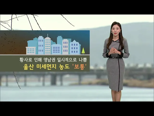 [오늘까지 온화해.. 오전 흐리고 오후 구름 많음]1) 오늘은 올겨울 들어 가장 온화한 날이 예상됩니다. 현재 기온 3도로 최저기온 어제보다 높고요. 한낮에도 16도까지 크게 올라서 올겨울 가장 높은 기온을 보였던 지난 12월보다 더 포근하겠습니다.2) 한편 울산은 미세먼지 농도 보통 수준이 예상되는 가운데, 어제 오후 ...