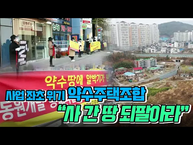 ◀ANC▶주택조합이 추진하던 사업부지가 공매로 사라지면 사업은 무산되고그 피해는 돈을 낸 조합원들에게 돌아갑니다.사업부지가 공매로 넘어가사업이 좌초 위기에 놓인약수마을지역주택조합이올 들어 부산 동원개발 본사 앞에서집회를 갖고 있는데요.땅을 사간 회사는부산의 다른 2곳인데왜 동원개발 앞에서 집회를 하...