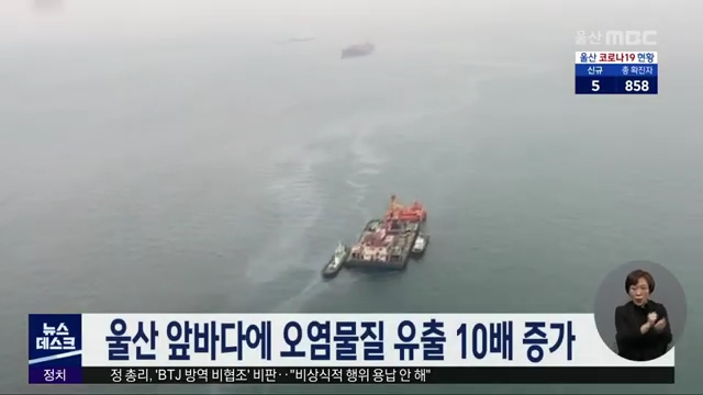 울산 앞바다에 오염물질 유출 10배 증가