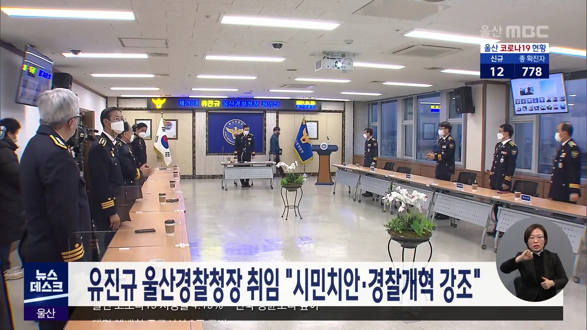 제 26대 울산경찰청장으로 임명된 유진규 울산경찰청장이 오늘(1/8) 취임식을 가졌습니다. 유진규 청장은 취임사에서 보이스피싱, 아동학대 등 시민 치안에 역량을 집중하는 한편 수사권 조정과 자치경찰제 도입 등 경찰개혁 과제의 성공적 완수를 강조했습니다.