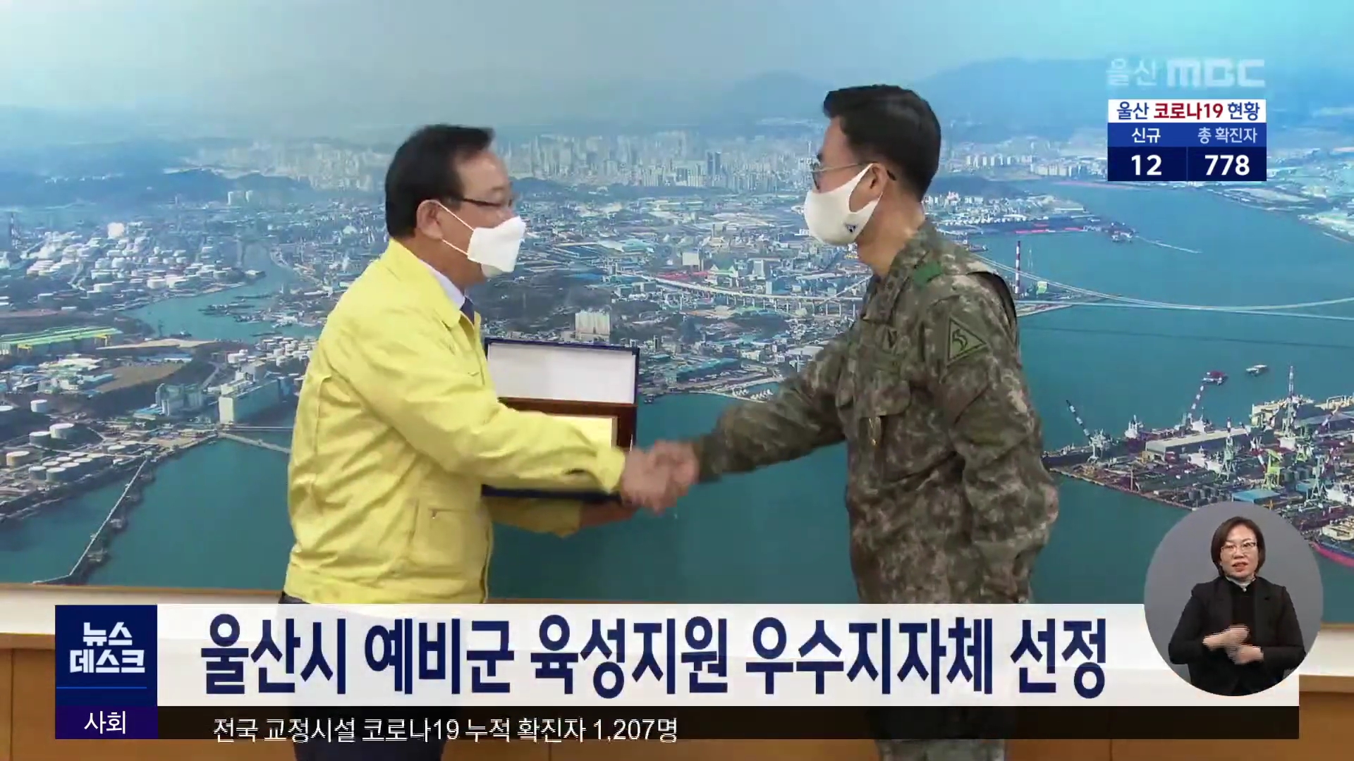 울산시가 2020년 예비군 육성지원 우수지자체에 선정돼 육군참모총장 감사패를 받았습니다. 울산시는 매년 지역 방호 책임부대인 제53사단 7765부대에 예비군 교육훈련 예산을 지원하고 있습니다. 지난해에는 드론과 고성능 CCTV 운영을 지원했습니다. //
