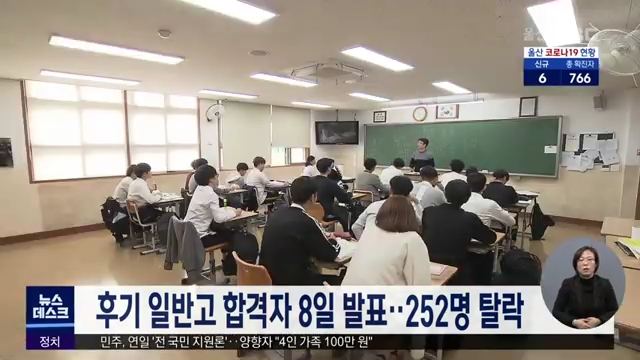 울산시교육청은 내일(1/8) 2021학년도 후기 일반고등학교 입학전형 합격자 7,201명을 발표합니다 정원 외 합격자는 국가유공자 자녀 16명과 특수교육대상자 80명 등 103명이며 탈락자는 252명입니다. 합격여부는 내일(1/8) 오전 10시에 출신 중학교와 시교육청 홈페이지 팝업창에서 자신의 중학교와 생년월일, 성명을 입력...