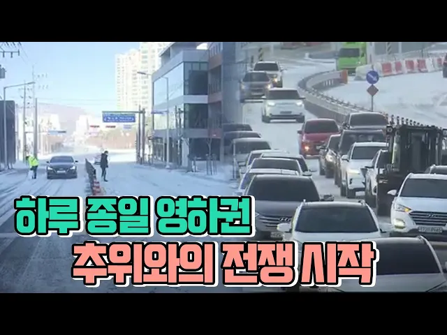 ◀ANC▶밤 사이 울산 전역에 눈과 함께 강추위가찾아왔습니다.아침 출근길은 꽁꽁 언 도로에 교통체증이 이어졌고 영하 10도에 가까운 맹추위까지 더해져 기업들도 추위와의 전쟁을시작했습니다.정인곤 기자. ◀END▶ ◀VCR▶도로가 새하얀 눈으로 뒤덮혀 차선도 횡단보도도 보이지 않습니다.차 밖으로는 굵은 눈발이 ...