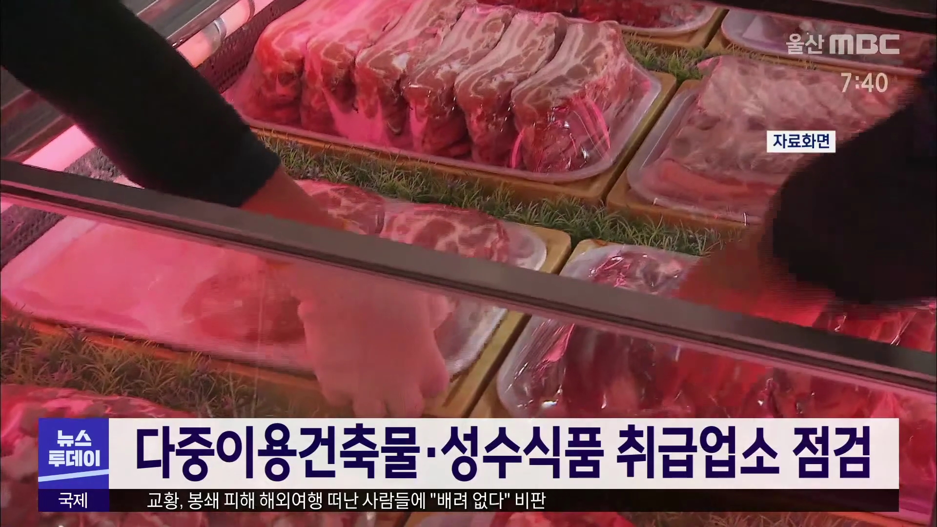 울산시가 설 연휴를 앞두고 다중이용건축물 민·관 합동점검을 실시합니다. 세이브존 울산점과 농수산물종합유통센터, 남창옹기종기시장 등 대형 판매시설 5곳이 대상입니다. 또, 성수식품 제조와 유통, 판매하는 취급업소 60곳을 대상으로 한 특별단속이 다음달 5일까지 실시됩니다. //