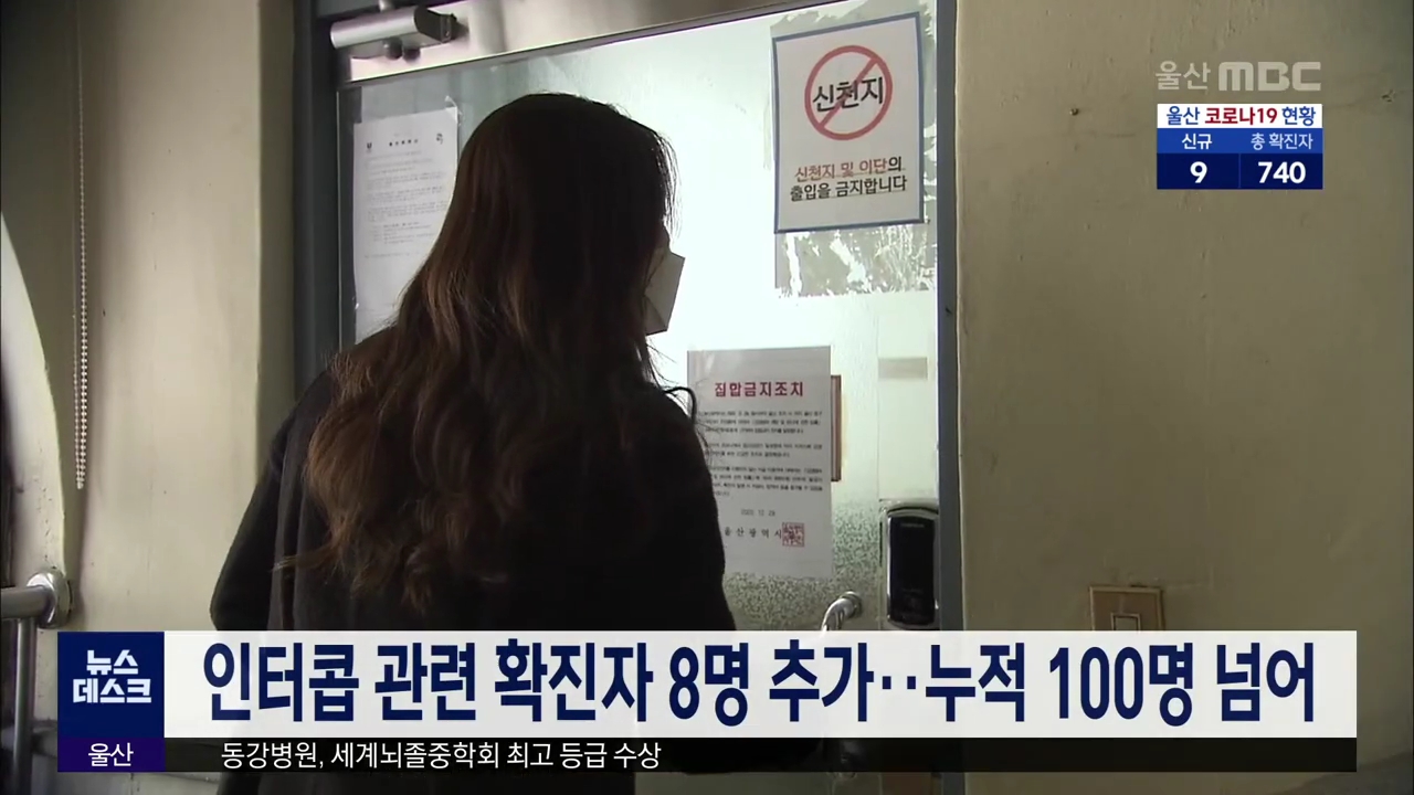 울산에서 기독교 선교단체 인터콥 관련한 코로나19 확진자가 8명 늘었습니다. 오늘 추가 확진판정을 받은 동구에서 사는 20대 등은 지난 1일 확진 판정을 받은 725번 확진자의 접촉자로 확인되는 등 지역 사회 감염이 잇따르고 있습니다. 이로써 울산에서 인터콥과 직·간접적으로 관련된 누적 확진자는 100명을 넘었습니다....
