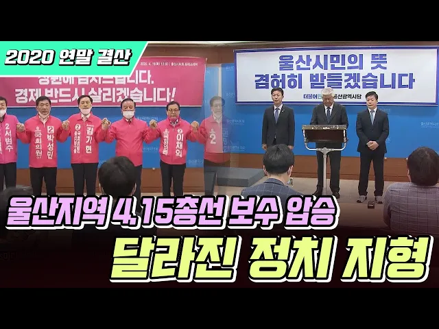 ◀ANC▶울산의 2020년 한 해를 돌아보는 연속기획.오늘은 지역 정치입니다.울해 울산지역 정가는 4.15 총선을 기점으로분위기기 많이 바뀌었습니다.보수 진영이 압승을 거두면서 더불어민주당의 울산지역 기반이취약하다는 게 드러난 한 해였습니다. 유희정 기자. ◀END▶ ◀VCR▶4.15 총선은 전국적으로는 더불어민주...