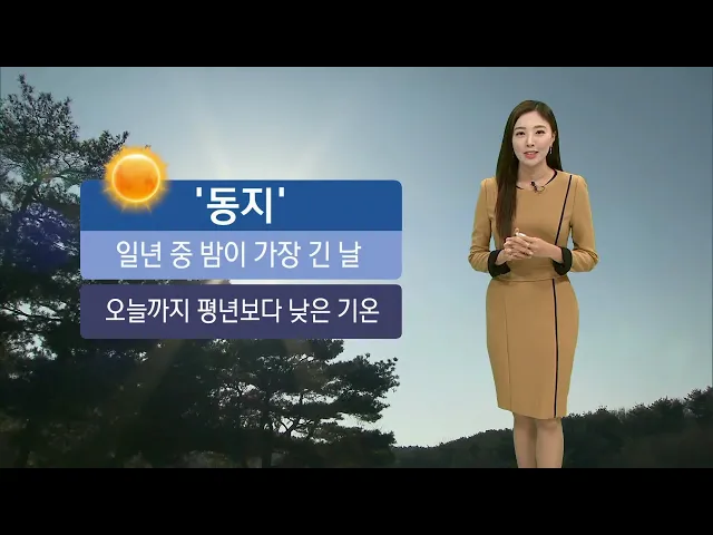 [오늘까지 추위... 울산 '건조 경보']1) 오늘은 밤이 가장 길고, 낮이 가장 짧다는 절기 동지입니다. 겨울의 4번째 절기인 만큼 추위가 더해지고 있는데요. 오늘 하늘은 맑겠고, 오늘까지 기온이 평년보다 낮겠습니다. 또 바람도 약간 강하게 불어서 체감온도는 더 떨어져 춥겠습니다. 보온에 신경 써주시기 바랍니다.2) 한...