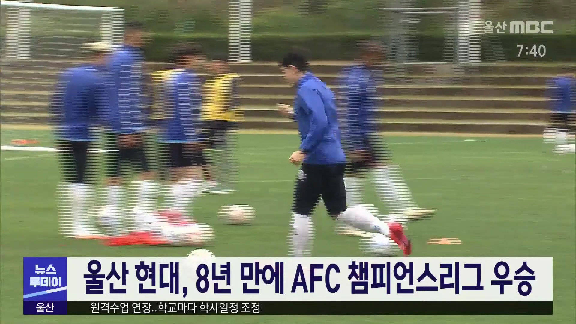 프로축구 울산 현대가 8년 만에 아시아축구연맹 챔피언스리그 정상에 올랐습니다. 울산은 어제(12/19) 밤 카타르에서 열린 결승전에서 이란의 페르세폴리스를 2대 1로 누르고 2012년 이후 8년 만에 아시아 챔피언 자리에 올랐습니다. 울산은 이번 우승으로 61억원의 상금을 받게 됐습니다.